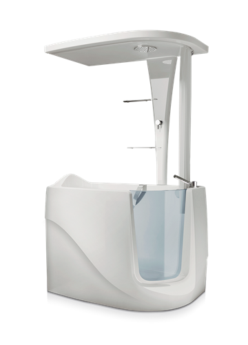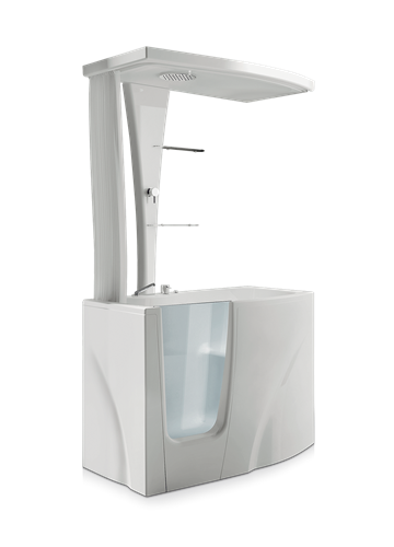 Lo sportello si apre e si chiude come una porta. Questo rende l'ingresso e l'uscita più semplici rispetto a una vasca tradizionale, che richiede di sollevare le gambe per entrare.